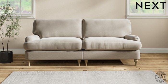 6.12.1 Buy Sadie Deep Relaxed Sit 4 Seater Sofa Ripple Chenille Light Natural High Slim Turned - Light from the Next UK online shop Click here to use our accessible website