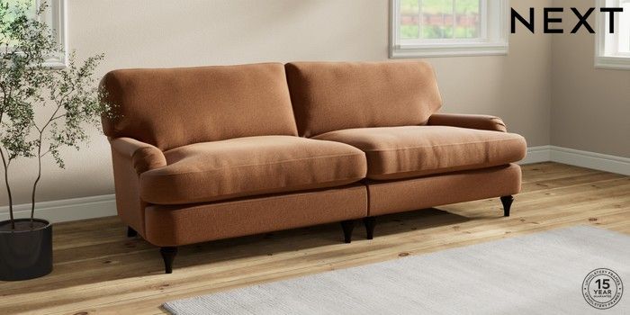 7.0.3 Buy Sadie Deep Relaxed Sit 4 Seater Sofa Ripple Chenille Mid Rust Brown High Slim Turned - Dark from the Next UK online shop Click here to use our accessible website