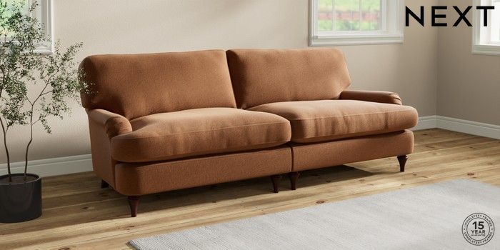 7.0.3 Buy Sadie Deep Relaxed Sit 4 Seater Sofa Ripple Chenille Mid Rust Brown High Slim Turned - Dark Brown from the Next UK online shop Click here to use our accessible website