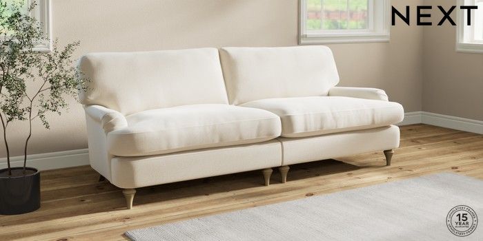 7.0.3 Buy Sadie Deep Relaxed Sit 4 Seater Sofa Ripple Chenille Oyster High Slim Turned - Light from the Next UK online shop Click here to use our accessible website