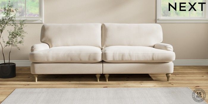 6.12.1 Buy Sadie Deep Relaxed Sit 4 Seater Sofa Studio Chenille Oyster High Slim Turned - Light from the Next UK online shop Click here to use our accessible website
