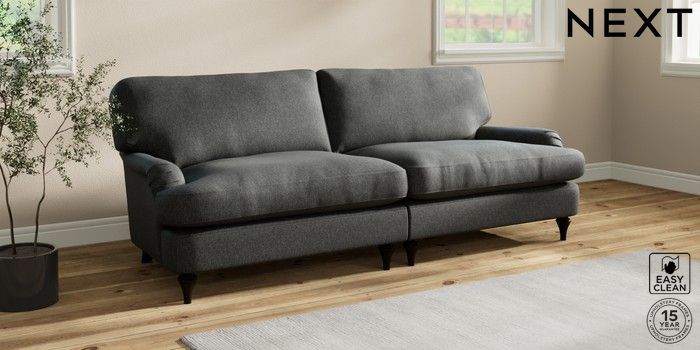 7.0.3 Buy Sadie Deep Relaxed Sit 4 Seater Sofa Tweedy Blend Easy Clean Charcoal Grey High Slim Turned - Dark from the Next UK online shop Click here to use our accessible website