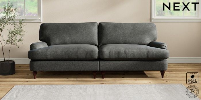 6.12.1 Buy Sadie Deep Relaxed Sit 4 Seater Sofa Tweedy Blend Easy Clean Charcoal Grey High Slim Turned - Dark Brown from the Next UK online shop Click here to use our accessible website