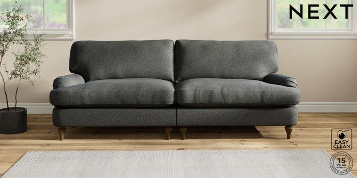 6.12.1 Buy Sadie Deep Relaxed Sit 4 Seater Sofa Tweedy Blend Easy Clean Charcoal Grey High Slim Turned - Mid from the Next UK online shop Click here to use our accessible website