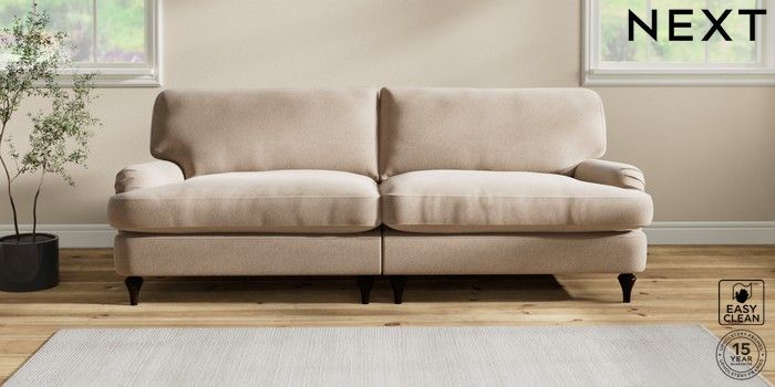 6.12.1 Buy Sadie Deep Relaxed Sit 4 Seater Sofa Tweedy Blend Easy Clean Light Dove Natural High Slim Turned - Dark from the Next UK online shop Click here to use our accessible website