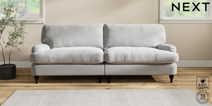 6.12.1 Buy Sadie Deep Relaxed Sit 4 Seater Sofa Tweedy Blend Easy Clean Light Silver Grey High Slim Turned - Dark from the Next UK online shop Click here to use our accessible website
