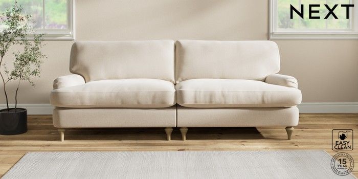 6.12.1 Buy Sadie Deep Relaxed Sit 4 Seater Sofa Tweedy Blend Easy Clean Oyster High Slim Turned - Light from the Next UK online shop Click here to use our accessible website