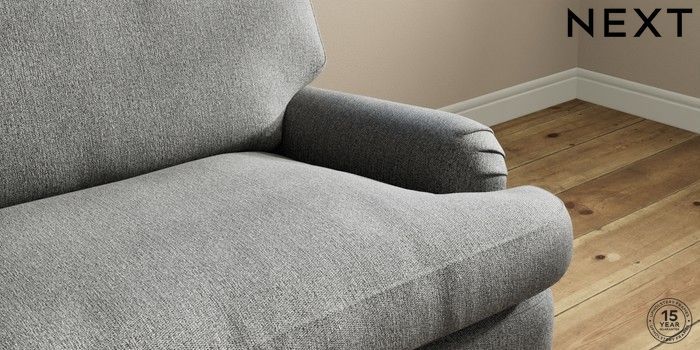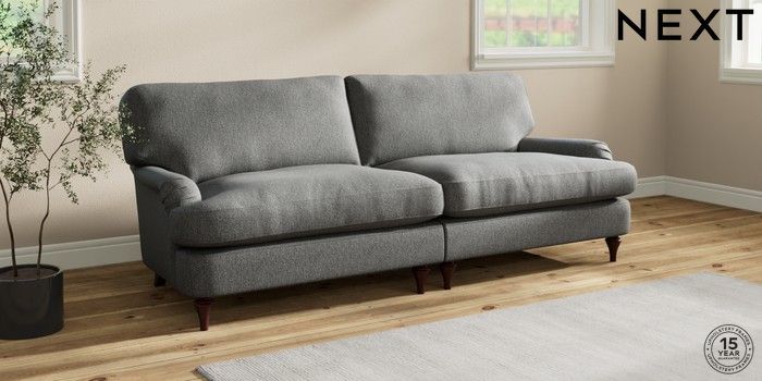 7.0.3 Buy Sadie Deep Relaxed Sit 4 Seater Sofa Tweedy Chenille Dark Grey High Slim Turned - Dark Brown from the Next UK online shop Click here to use our accessible website
