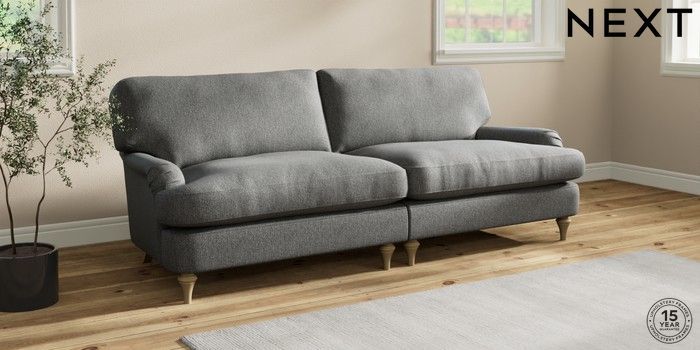 7.0.3 Buy Sadie Deep Relaxed Sit 4 Seater Sofa Tweedy Chenille Dark Grey High Slim Turned - Light from the Next UK online shop Click here to use our accessible website
