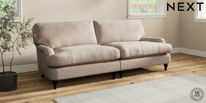 7.0.3 Buy Sadie Deep Relaxed Sit 4 Seater Sofa Tweedy Chenille Mid Natural High Slim Turned - Dark from the Next UK online shop Click here to use our accessible website