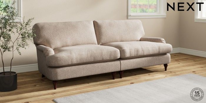 7.0.3 Buy Sadie Deep Relaxed Sit 4 Seater Sofa Tweedy Chenille Mid Natural High Slim Turned - Dark Brown from the Next UK online shop Click here to use our accessible website