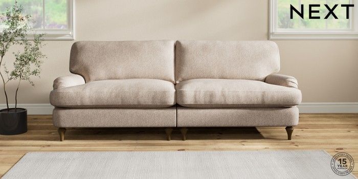 6.12.1 Buy Sadie Deep Relaxed Sit 4 Seater Sofa Tweedy Chenille Mid Natural High Slim Turned - Mid from the Next UK online shop Click here to use our accessible website