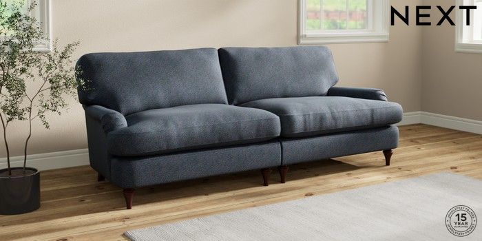 7.0.3 Buy Sadie Deep Relaxed Sit 4 Seater Sofa Tweedy Chenille Navy Blue High Slim Turned - Dark Brown from the Next UK online shop Click here to use our accessible website
