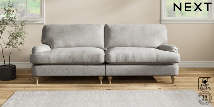 6.12.1 Buy Sadie Deep Relaxed Sit 4 Seater Sofa Woven Chenille Easy Clean Light Grey High Slim Turned - Light from the Next UK online shop Click here to use our accessible website