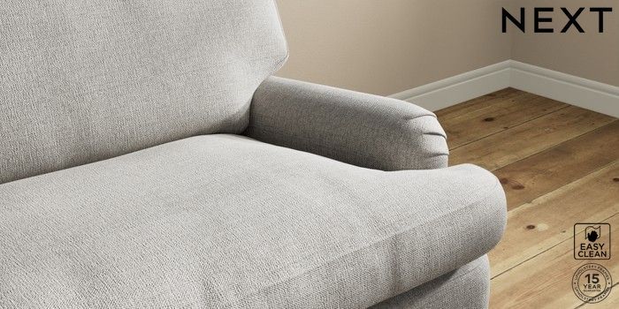 7.0.3 Buy Sadie Deep Relaxed Sit 4 Seater Sofa Woven Chenille Easy Clean Light Grey High Slim Turned - Light from the Next UK online shop Click here to use our accessible website