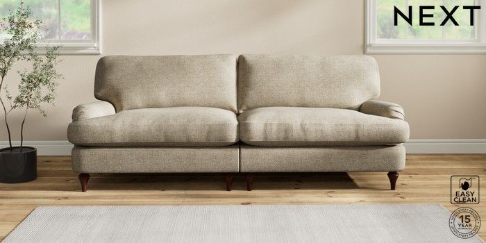 6.12.1 Buy Sadie Deep Relaxed Sit 4 Seater Sofa Woven Chenille Easy Clean Mid Natural High Slim Turned - Dark Brown from the Next UK online shop Click here to use our accessible website