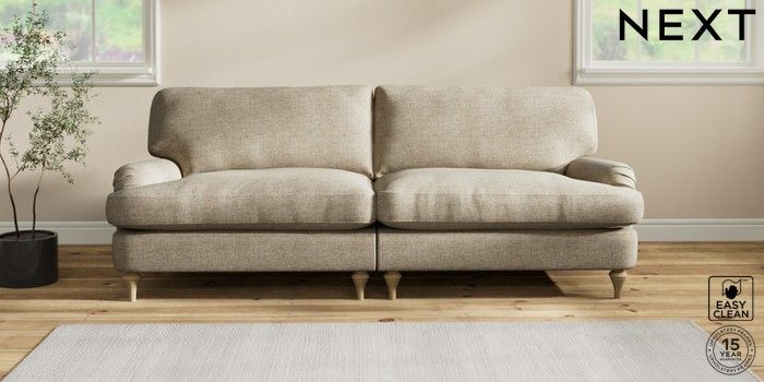 6.12.1 Buy Sadie Deep Relaxed Sit 4 Seater Sofa Woven Chenille Easy Clean Mid Natural High Slim Turned - Light from the Next UK online shop Click here to use our accessible website
