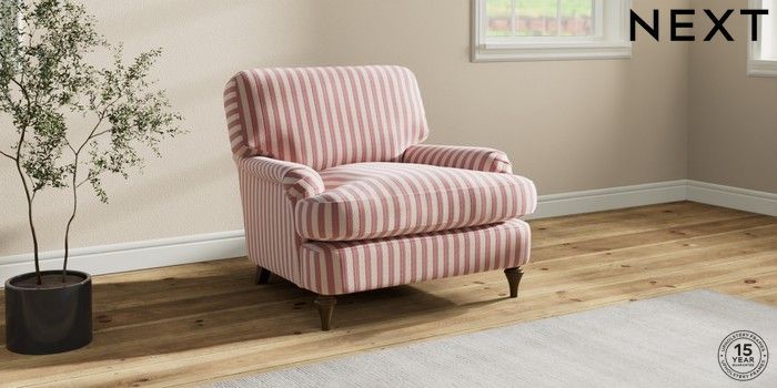 7.0.3 Buy Sadie Deep Relaxed Sit Armchair Bold Chenille Stripe Dark Pink High Slim Turned - Mid from the Next UK online shop Click here to use our accessible website
