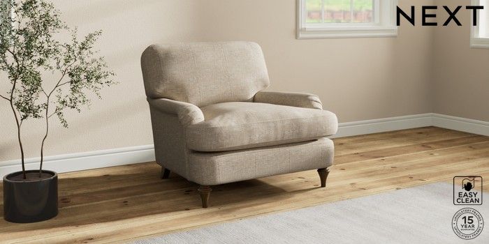 7.0.3 Buy Sadie Deep Relaxed Sit Armchair Boucle Weave Easy Clean Dark Natural High Slim Turned - Mid from the Next UK online shop Click here to use our accessible website