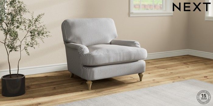 7.0.3 Buy Sadie Deep Relaxed Sit Armchair Chenille Stripe Slate Blue High Slim Turned - Light from the Next UK online shop Click here to use our accessible website