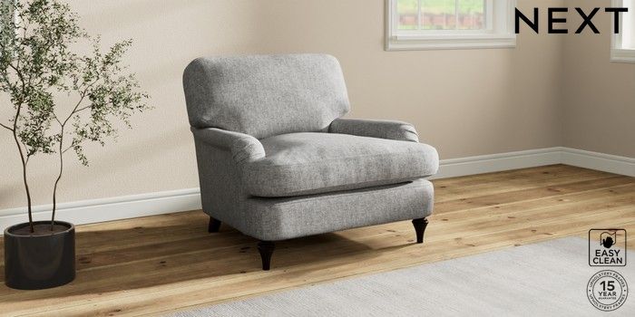 7.0.3 Buy Sadie Deep Relaxed Sit Armchair Chunky Boucle Easy Clean Light Grey High Slim Turned - Dark from the Next UK online shop Click here to use our accessible website
