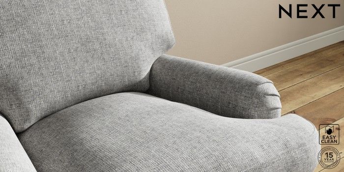 7.0.3 Buy Sadie Deep Relaxed Sit Armchair Chunky Boucle Easy Clean Light Grey High Slim Turned - Dark Brown from the Next UK online shop Click here to use our accessible website