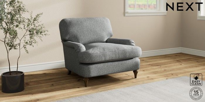 7.0.3 Buy Sadie Deep Relaxed Sit Armchair Chunky Boucle Easy Clean Mid Grey High Slim Turned - Mid from the Next UK online shop Click here to use our accessible website
