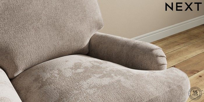 7.0.3 Buy Sadie Deep Relaxed Sit Armchair Chunky Chenille Light Dove High Slim Turned - Dark Brown from the Next UK online shop Click here to use our accessible website