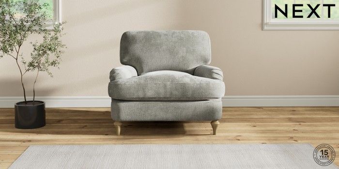 6.12.1 Buy Sadie Deep Relaxed Sit Armchair Chunky Chenille Light Grey High Slim Turned - Light from the Next UK online shop Click here to use our accessible website