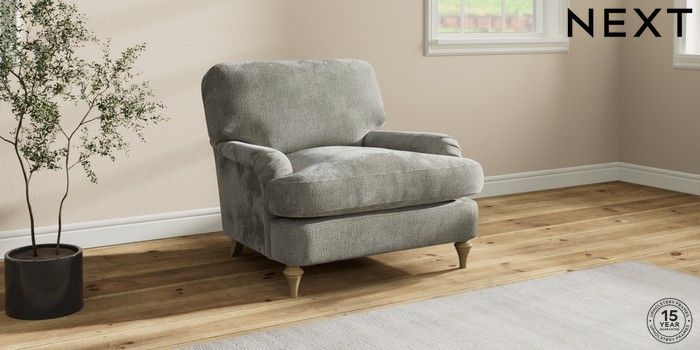 7.0.3 Buy Sadie Deep Relaxed Sit Armchair Chunky Chenille Light Grey High Slim Turned - Light from the Next UK online shop Click here to use our accessible website