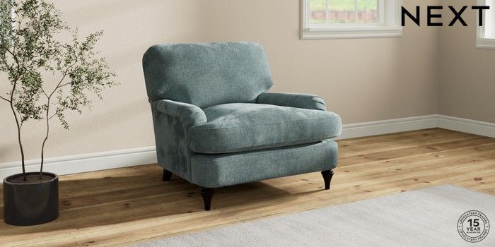 7.0.3 Buy Sadie Deep Relaxed Sit Armchair Chunky Chenille Light Teal Green High Slim Turned - Dark from the Next UK online shop Click here to use our accessible website