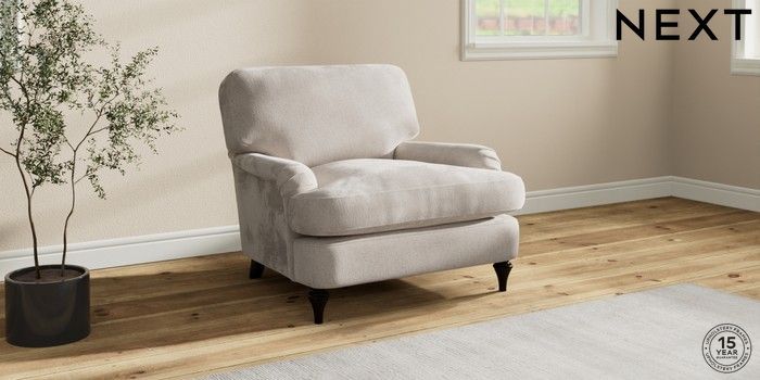 7.0.3 Buy Sadie Deep Relaxed Sit Armchair Chunky Chenille Oyster High Slim Turned - Dark from the Next UK online shop Click here to use our accessible website