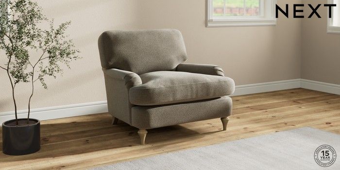 7.0.3 Buy Sadie Deep Relaxed Sit Armchair Chunky Marl Light Olive Green High Slim Turned - Light from the Next UK online shop Click here to use our accessible website