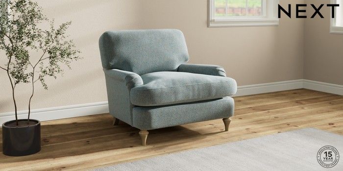 7.0.3 Buy Sadie Deep Relaxed Sit Armchair Chunky Marl Mid Blue High Slim Turned - Light from the Next UK online shop Click here to use our accessible website