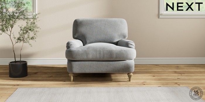 6.12.1 Buy Sadie Deep Relaxed Sit Armchair Chunky Marl Mid Grey High Slim Turned - Light from the Next UK online shop Click here to use our accessible website
