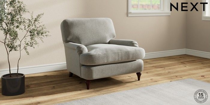 7.0.3 Buy Sadie Deep Relaxed Sit Armchair Chunky Texture Dove High Slim Turned - Dark Brown from the Next UK online shop Click here to use our accessible website