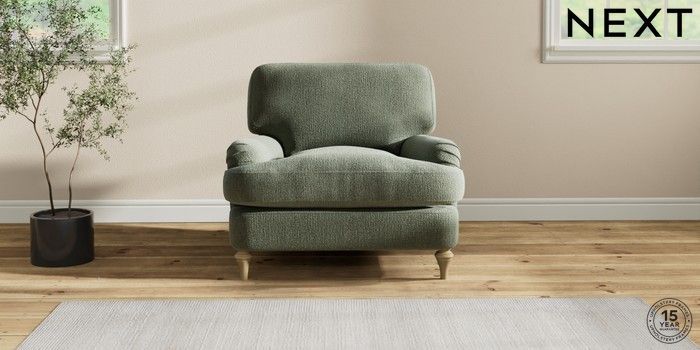 6.12.1 Buy Sadie Deep Relaxed Sit Armchair Chunky Texture Mid Forest Green High Slim Turned - Light from the Next UK online shop Click here to use our accessible website