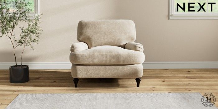 6.12.1 Buy Sadie Deep Relaxed Sit Armchair Chunky Weave Cream High Slim Turned - Dark from the Next UK online shop Click here to use our accessible website