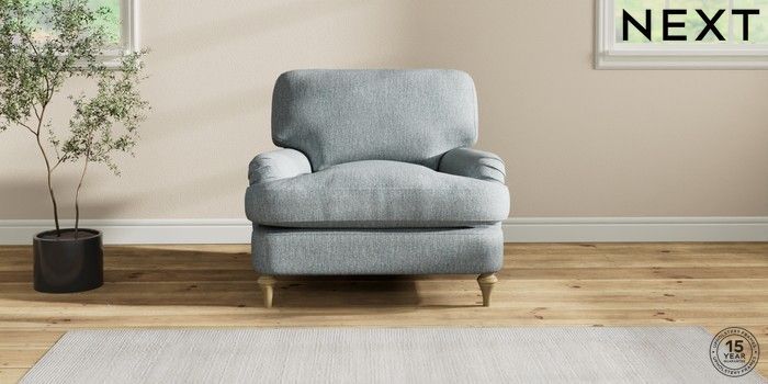 6.12.1 Buy Sadie Deep Relaxed Sit Armchair Chunky Weave Mid Blue High Slim Turned - Light from the Next UK online shop Click here to use our accessible website