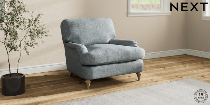 7.0.3 Buy Sadie Deep Relaxed Sit Armchair Chunky Weave Mid Blue High Slim Turned - Light from the Next UK online shop Click here to use our accessible website