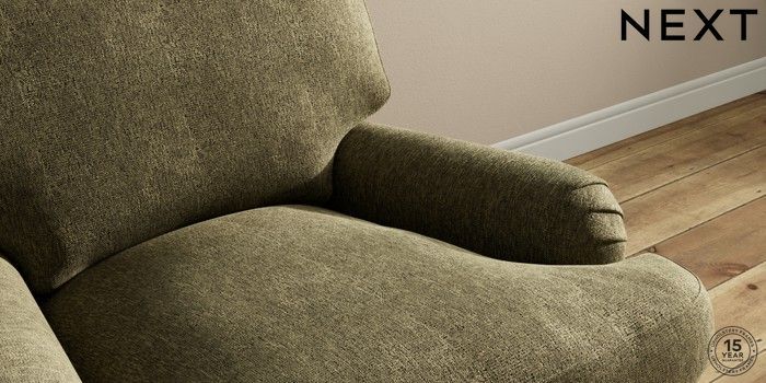 7.0.3 Buy Sadie Deep Relaxed Sit Armchair Cotswold Chenille Dark Green High Slim Turned - Dark Brown from the Next UK online shop Click here to use our accessible website