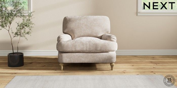 6.12.1 Buy Sadie Deep Relaxed Sit Armchair Distressed Velour Mid Natural High Slim Turned - Light from the Next UK online shop Click here to use our accessible website