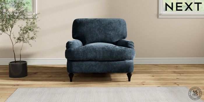 6.12.1 Buy Sadie Deep Relaxed Sit Armchair Distressed Velour Midnight Blue High Slim Turned - Dark from the Next UK online shop Click here to use our accessible website