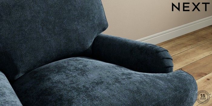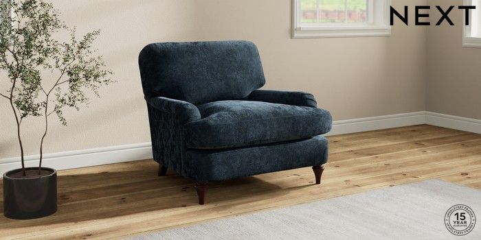 7.0.3 Buy Sadie Deep Relaxed Sit Armchair Distressed Velour Midnight Blue High Slim Turned - Dark Brown from the Next UK online shop Click here to use our accessible website