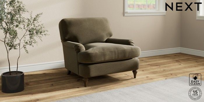 7.0.3 Buy Sadie Deep Relaxed Sit Armchair Fine Chenille Easy Clean Dark Moss Green High Slim Turned - Mid from the Next UK online shop Click here to use our accessible website