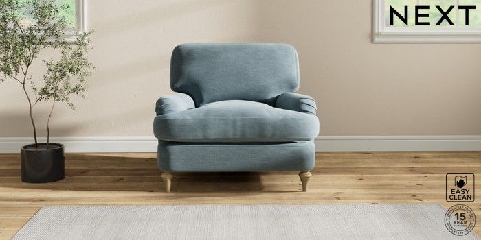 6.12.1 Buy Sadie Deep Relaxed Sit Armchair Fine Chenille Easy Clean Mid Blue High Slim Turned - Light from the Next UK online shop Click here to use our accessible website