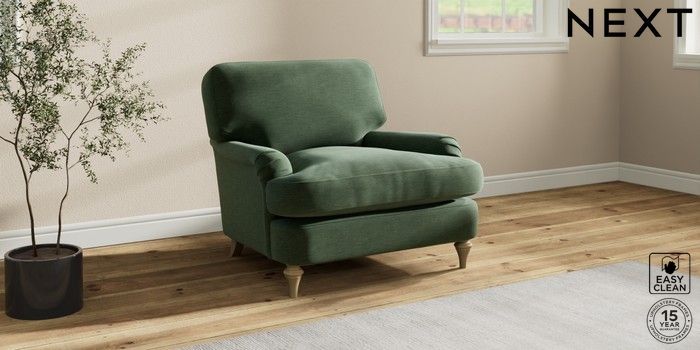 7.0.3 Buy Sadie Deep Relaxed Sit Armchair Fine Chenille Easy Clean Mid Khaki Green High Slim Turned - Light from the Next UK online shop Click here to use our accessible website