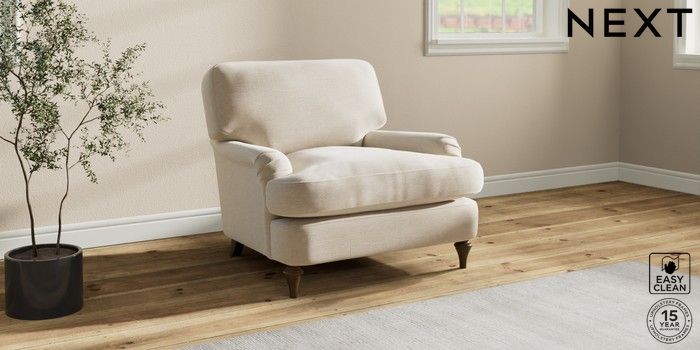 7.0.3 Buy Sadie Deep Relaxed Sit Armchair Fine Chenille Easy Clean Oyster High Slim Turned - Mid from the Next UK online shop Click here to use our accessible website
