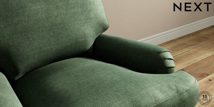 7.0.3 Buy Sadie Deep Relaxed Sit Armchair Luxe Chenille Dark Green High Slim Turned - Mid from the Next UK online shop Click here to use our accessible website