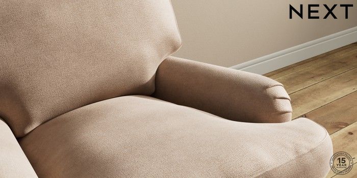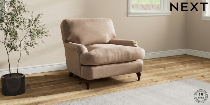 7.0.3 Buy Sadie Deep Relaxed Sit Armchair Luxe Chenille Mid Natural High Slim Turned - Dark Brown from the Next UK online shop Click here to use our accessible website